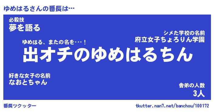 | ヘコむあだ名 | 『ゆめにー』『豆乳』『ゆめお』 |