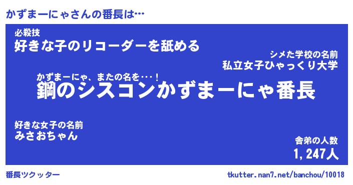 | 意味不明あだ名 | 『ペロリンかずまーにゃ』 |