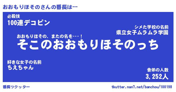| 2回繰り返すあだ名 | 『おおおお』『おおおお』『ぬぷぬぷ』 |