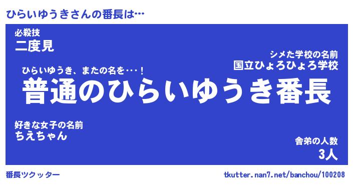 | ヘコむあだ名 | 『ひらにゅー』『レバニラ』『ひらお』 |