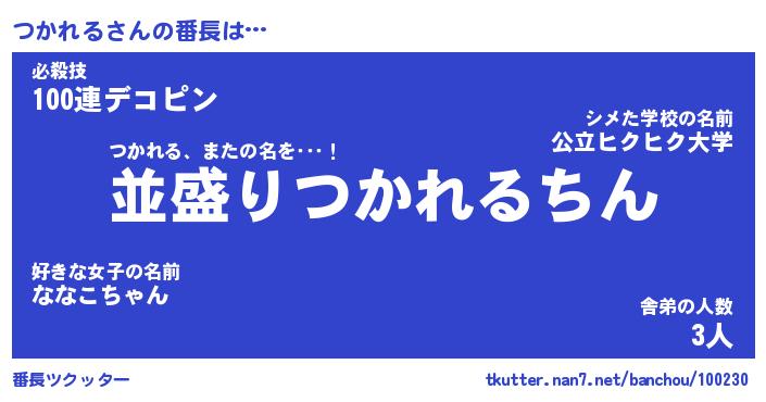 | 男性向けラノベタイトル風あだ名 | 『つかれるの憂鬱』 |
