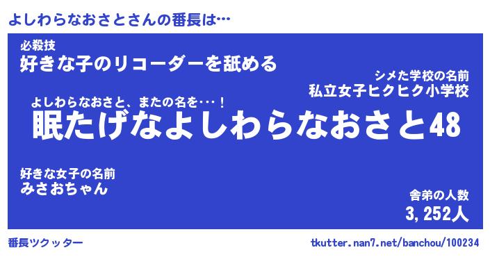 | ポケモン風あだ名 | 『ヨシチュウ』『ヨシワダネ』 |