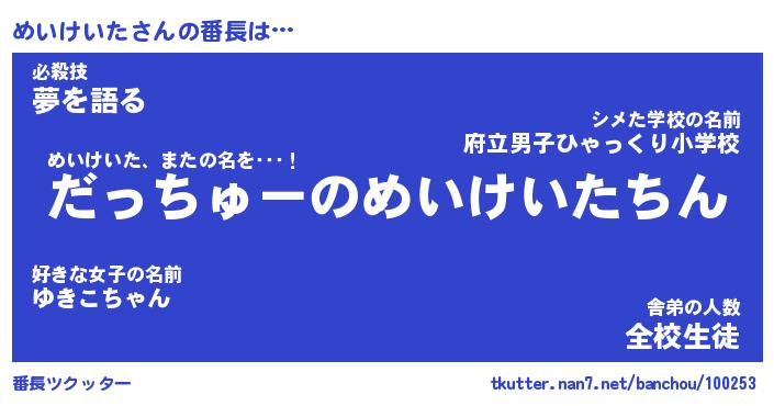 | 肩書あだ名 | 『めいけいた社長』『めいけいた国家主席』 |