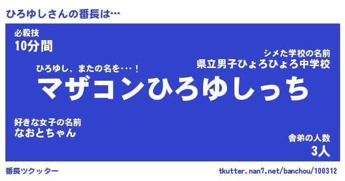 | ポケモン風あだ名 | 『ヒロチュウ』『ヒロユダネ』 |