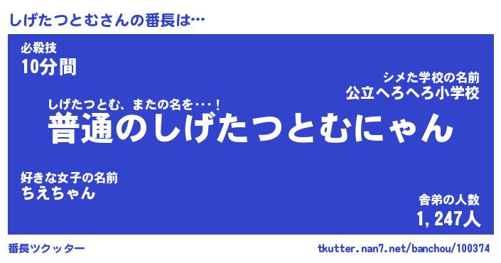 | 意味不明あだ名 | 『ペロリンしげたつとむ』 |