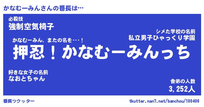 | ヒーロー風カッコイイあだ名 | 『スーパーカナムーミン』『黄金騎士カナ』 |
