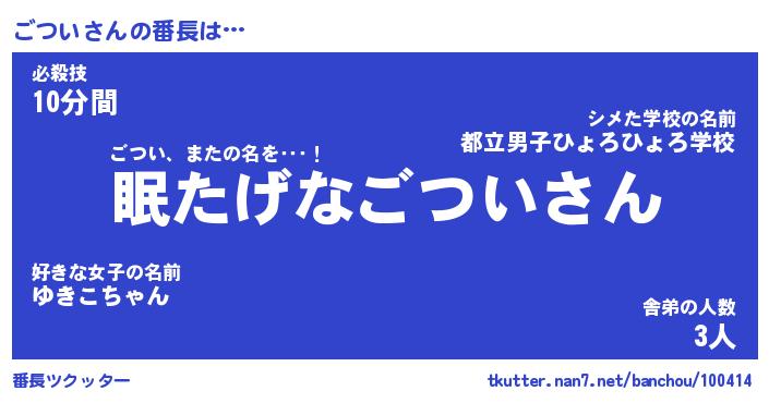 | ヘコむあだ名 | 『ごつにゅー』『豆乳』『ごつっちょ』 |