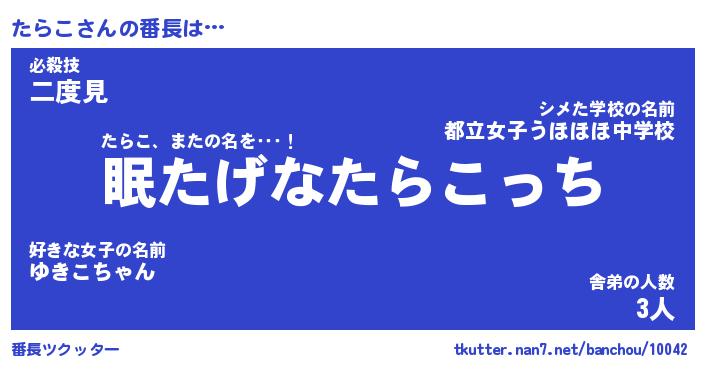 | ヘコむあだ名 | 『たらにゅー』『酢こんぶ』 |