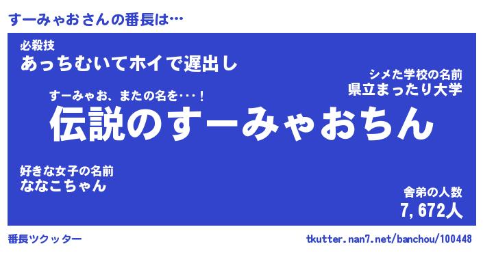 伝説のあだ名 | 『伝説の傭兵すーみゃお』 |