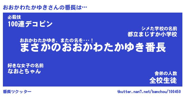 | 伝説のあだ名 | 『伝説のスナイパーおおかわたかゆき』 |