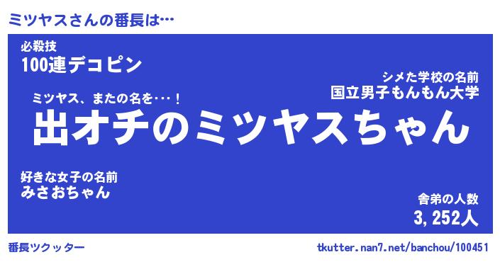| 胡散臭い通販商品みたいなあだ名 | 『必ず成功する霊験あらたかなお札…その名も「ミツヤス」』 |