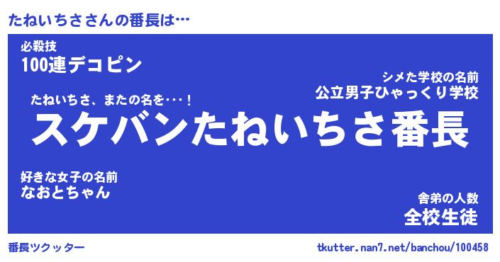 | ヒーロー風カッコイイあだ名 | 『スーパータネイチサ』『暗黒騎士タネ』 |