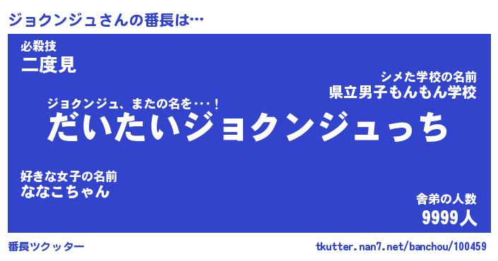| ピコ太郎風あだ名 | 『ジコ五郎』『ピジ八郎』『ジョ二郎』 |