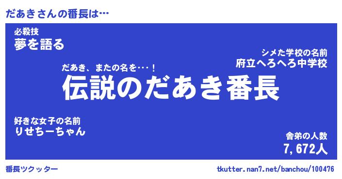 | 意味不明あだ名 | 『ペロリンだあき』『だあきフォーエバー』 |
