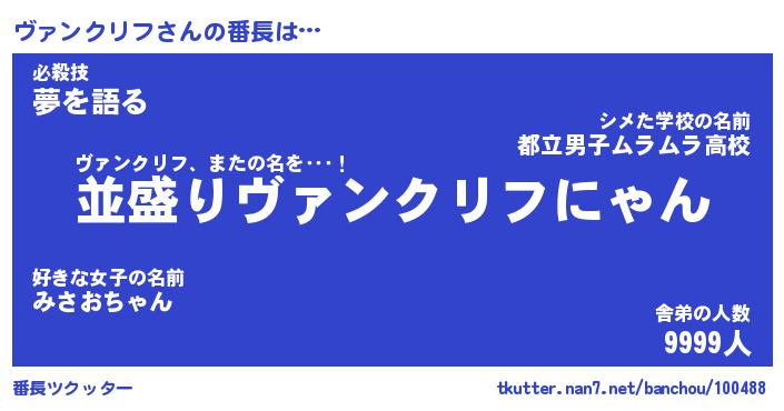 | ヒーロー風カッコイイあだ名 | 『スーパーヴァンクリフ』『天弓騎士ヴァ』 |