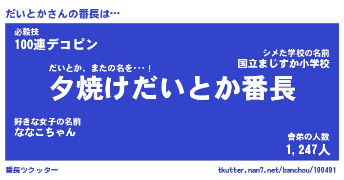 | 意味不明あだ名 | 『ペロリンだいとか』『永久保存だいとか』 |