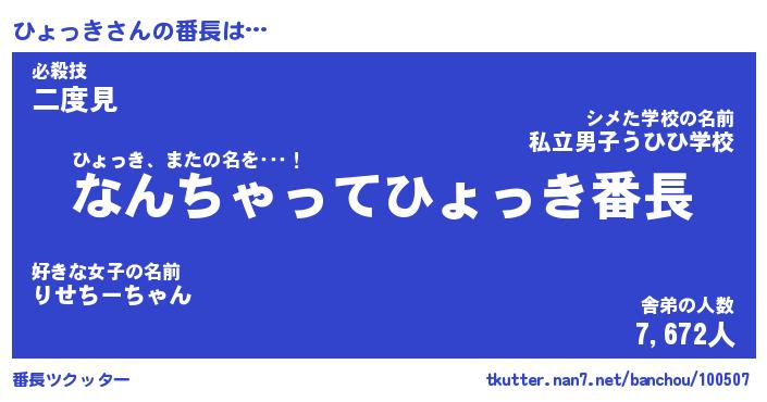 | ピコ太郎風あだ名 | 『ヒコ十郎』『ピヒ三郎』『ヒョ六郎』 |