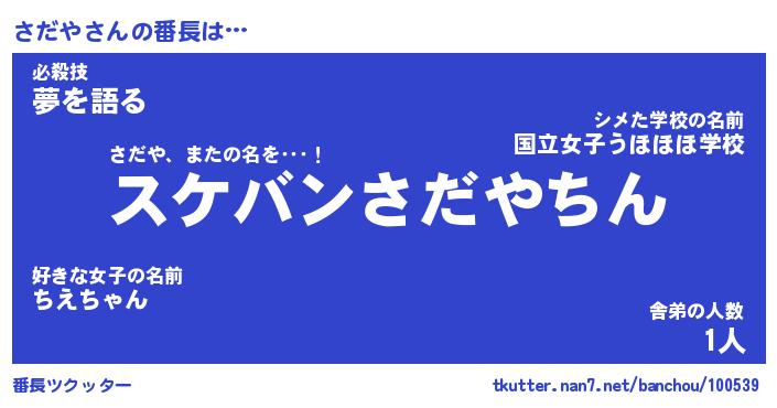 | 意味不明あだ名 | 『ペロリンさだや』『さだやフォーエバー』 |