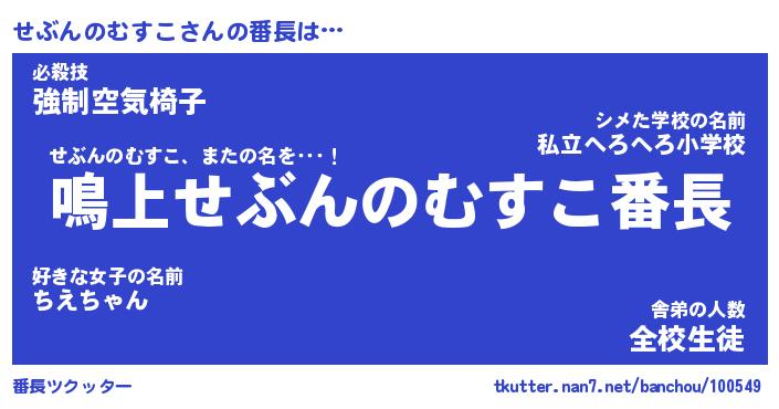 | 伝説のあだ名 | 『封印されしスナイパーせぶんのむすこ』 |