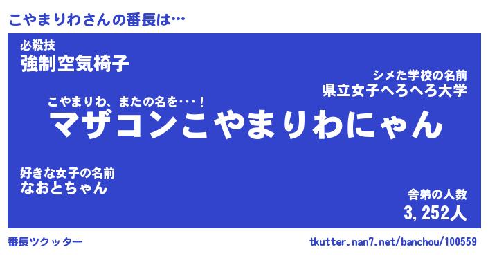 | 肩書あだ名 | 『こやまりわ店長』『こやまりわ総理大臣』 |