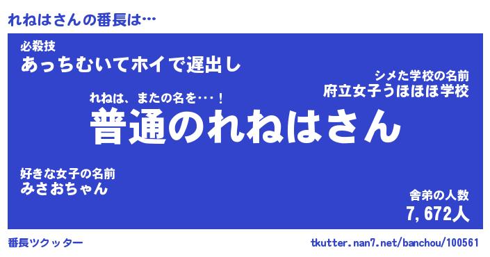 | 伝説のあだ名 | 『不死鳥のスナイパーれねは』 |