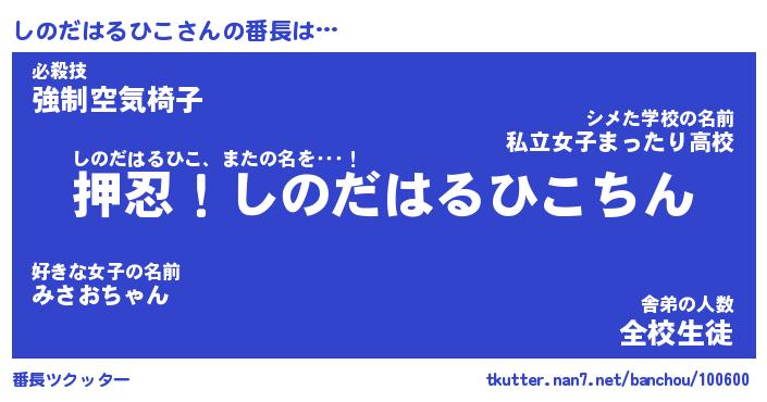| ヘコむあだ名 | 『しのふぇ~』『牛乳』『しの太郎』 |