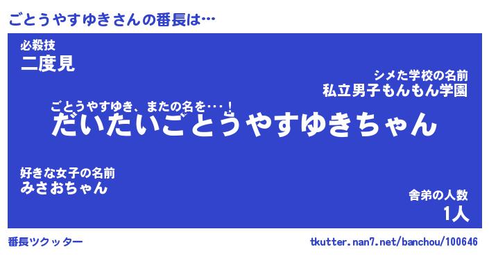 | ピコ太郎風あだ名 | 『ゴコ二郎』『ピゴ史郎』『ゴト八郎』 |