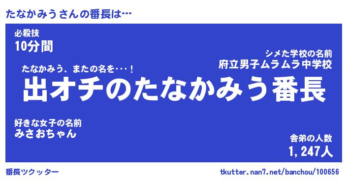 | 2回繰り返すあだ名 | 『たなたな』『たたなな』『おたおた』 |
