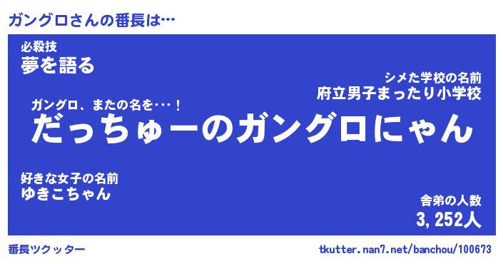 | ヒーロー風カッコイイあだ名 | 『スーパーガングロ』『銀牙騎士ガン』 |