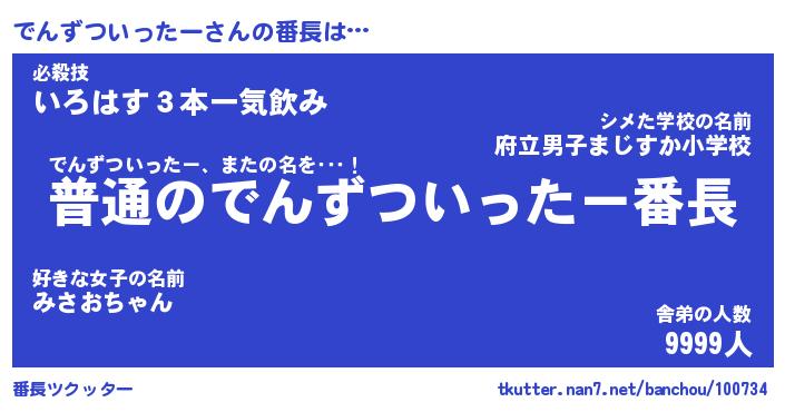 | 男性向けラノベタイトル風あだ名 | 『でんずついったーの憂鬱』 |