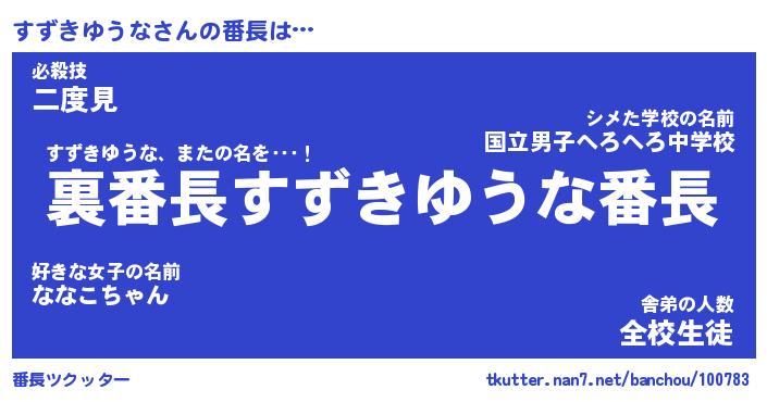| ヒーロー風カッコイイあだ名 | 『スーパースズキユウナ』『暗黒騎士スズ』 |