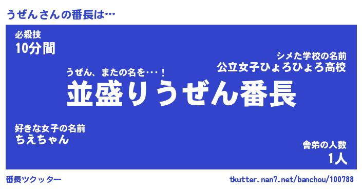 | ヒーロー風カッコイイあだ名 | 『スーパーウゼン』『ウルトラうぜんマン』 |