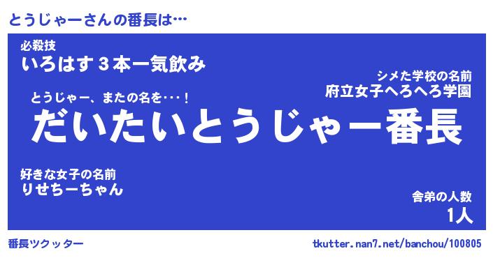 | 男性向けラノベタイトル風あだ名 | 『とうじゃーの憂鬱』 |