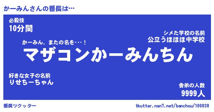 | 伝説のあだ名 | 『封印されし竜騎士かーみん』 |