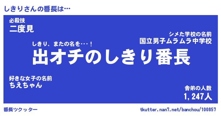 | 意味不明あだ名 | 『ペロリンしきり』『しきりフォーエバー』 |