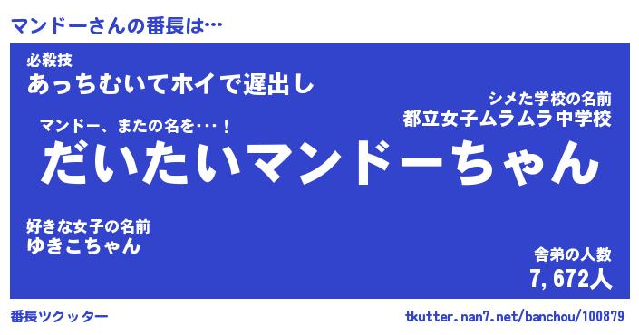 | 意味不明あだ名 | 『ペロリンマンドー』『永久保存マンドー』 |