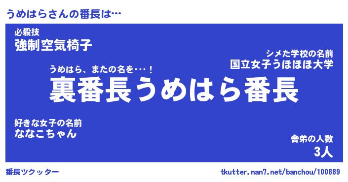 | ファンタジー風あだ名 | 『ウメフェル』『エターナルウメハラー』 |