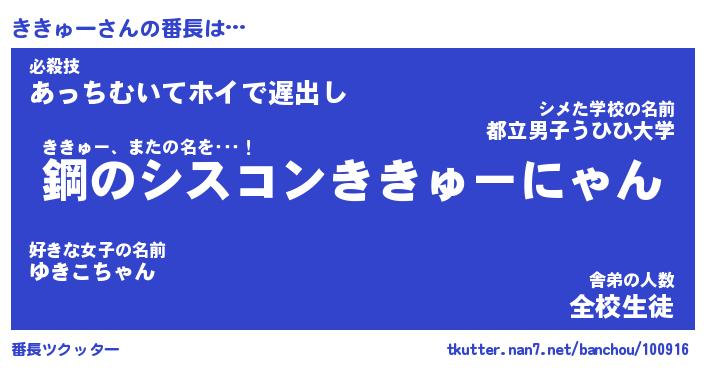 | 肩書あだ名 | 『ききゅー御曹司』『ききゅー国家主席』 |