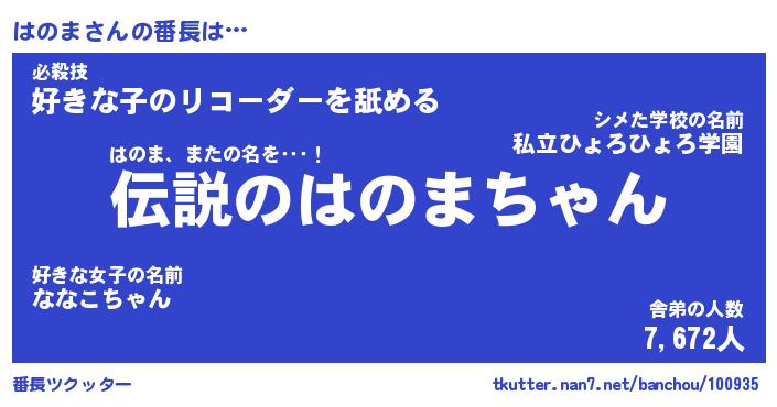 | ヒーロー風カッコイイあだ名 | 『スーパーハノマ』『ウルトラはのまマン』 |