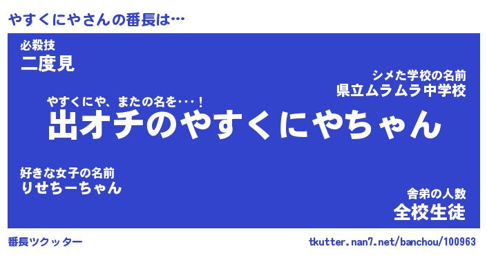| 伝説のあだ名 | 『伝説のスナイパーやすくにや』 |