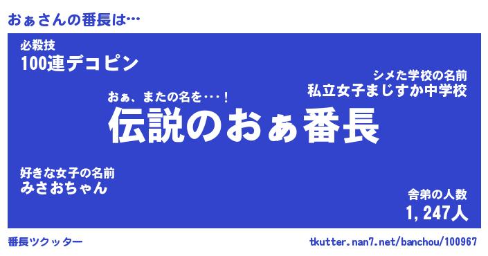 | 肩書あだ名 | 『おぁ店長』『おぁ国家主席』 |