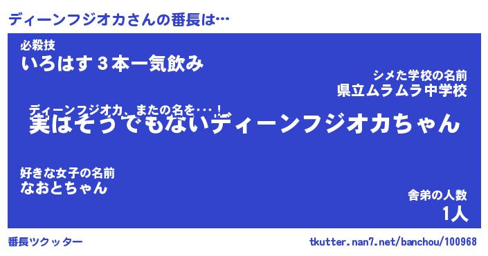 | 肩書あだ名 | 『ディーンフジオカ店長』 |