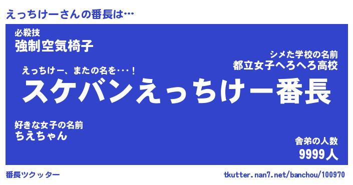 | 伝説のあだ名 | 『不死鳥のスナイパーえっちけー』 |