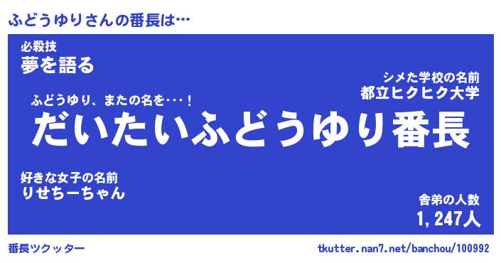 | 男性向けラノベタイトル風あだ名 | 『ふどうゆりの憂鬱』 |