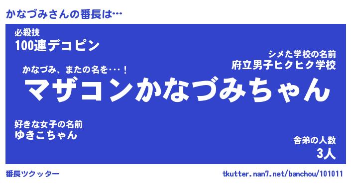 | ヒーロー風カッコイイあだ名 | 『スーパーカナヅミ』『魔戒騎士カナ』 |