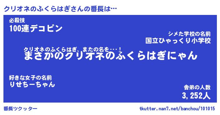 | ヒーロー風カッコイイあだ名 | 『スーパークリオネノフクラハギ』 |