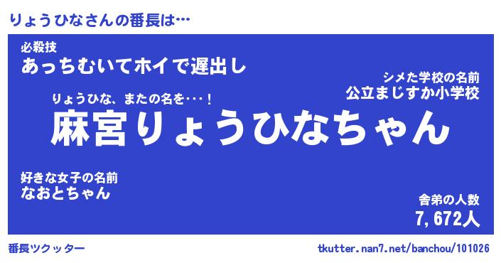 | 提督の名前『りょりょん提督』嫁『鬼怒』 |