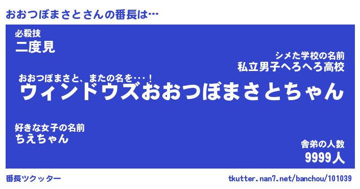 | 男性向けラノベタイトル風あだ名 | 『おおつぼまさとの憂鬱』 |