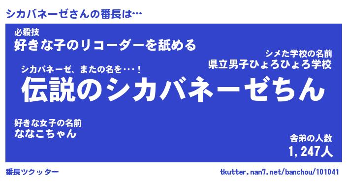 | ピコ太郎風あだ名 | 『シコ四郎』『ピシ六郎』『シカ一郎』 |