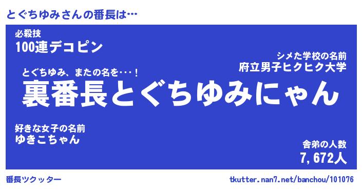 | ヘコむあだ名 | 『とぐにゅー』『つくし』『とぐを』 |